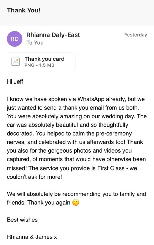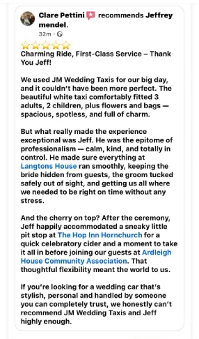 JM Wedding Taxis in Romford are a small Wedding Car Company who go above and beyond in making your special day that little bit better.